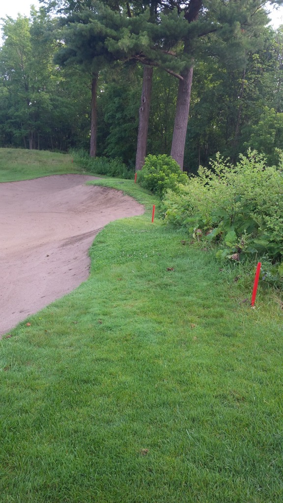 在高尔夫规则中,没有明确沙耙是放置在沙坑里或者是沙坑外。通过调查,安省高尔夫协会裁判委员会要求在锦标赛中所有的沙耙都要放置在沙坑的外围。沙耙放置位置的争论主要是,沙耙放置在沙坑的外围,沙耙有可能阻止球滚入沙坑。但是,如果沙耙放置在沙坑内,就有可能阻止球滚出沙坑。安省高尔夫协会的这个做法,对每个参加比赛的球员都是公平的。