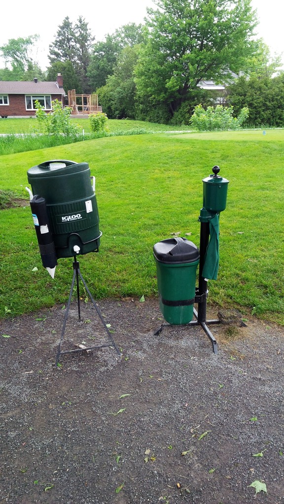 每个球场,在每个洞的开球区,都会提供清洗球装置和垃圾桶。有些好的球场也会提供清洁饮用水。特别是魁北克地区的球场,大部分都会提供清洁饮用水,供球员在打球期间,补充清洁饮用水。