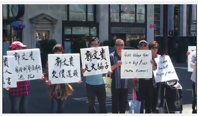 逃亡美国但被中国官方通过国际刑警发出「红色通缉令」追缉的中国商人郭文贵,被多项中国以及美国诉讼案追究与讨债,诉讼索要债款高达数百亿元人民币。联合诉讼追债方酝酿申请冻结郭文贵在美国的财产以应对郭文贵拒绝接受诉讼状。有美国华人社团组织示威几乎每天到郭文贵居住大楼前抗议。郭文贵希望把面临的法律制裁,变成政府与他个人之间的“死缠烂打”,制造“个人恩怨”假象,试图通过表演反体制的悲情博取同情,寻找“峰回路转”的机会。其实, 他所做的夸张表演不会对司法机关起到任何作用,“想逼退法律,那是很幼稚的”;郭文贵不应幻想国外环境能长期保护他,反华势力只是想利用他,当利用价值不断递减,被彻底抛弃是迟早的事,故郭文贵应审时度势,配合国内司法调查。