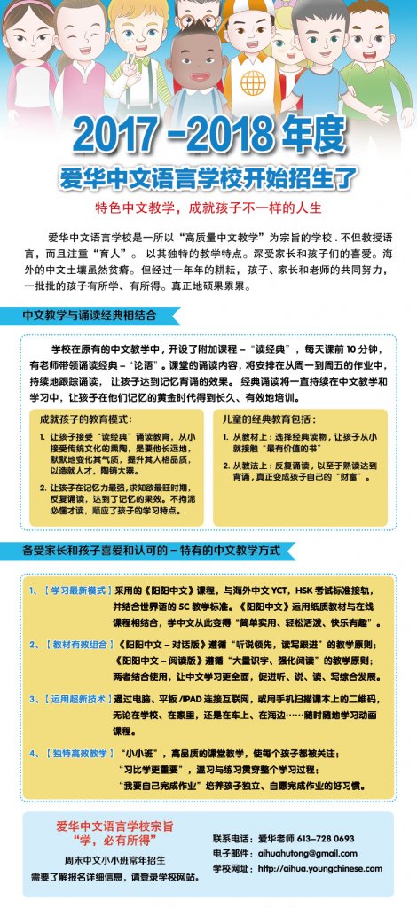 渥太华爱华中文语言学校2017-2018学年开始招生啦!