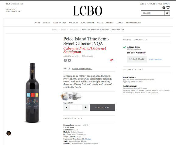 霹雳岛(pelee island winery)酒庄是加拿大安省LCBO最大的供应商,所有连锁有都有现货销售。