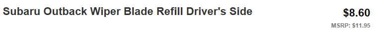 今天想换前后窗的雨刷,跑完各大汽车配件店居然找不到合适的,是那种很窄的push button hook。于是回dealer,dealer parts的小哥说不用换这个wiper blade,换里面的胶条就行。于是在电脑一顿找,出来的结果连他自己都吃一惊。前面的两条一共40多刀,后面的那条12寸的一条就得37刀!