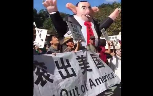 当地时间9月27日,有上百人在曼哈顿第五大道雪莉—荷兰大酒店前集会,抗议郭文贵破坏华人形象,称郭文贵是大骗子、流氓无赖,要求其滚出美国。