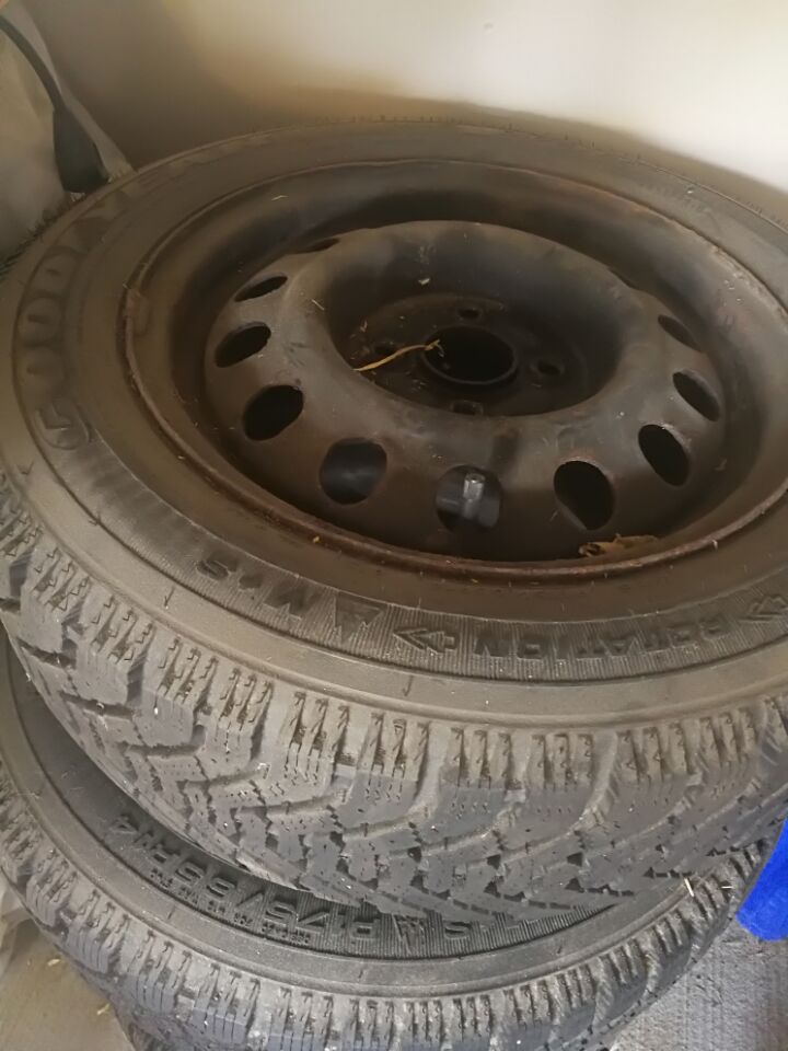 用了2个冬季,因为原来的那个Toyota的车子坏掉了,换了台大众,所以现在变成这4个冬胎没办法用上了 P175 / 65 R14 售价:300刀,需要的请赶快来取吧,冬天要来了。 另外还有4个带轮胎的Tire Rim,由于轮胎已经坏掉,不能用了,但是tire rim好的,如果需要的朋友,请直接取,免费送。适合轮胎的尺寸是P195 / 55 R15. 有兴趣的朋友请发悄悄话,直接留言有可能没办法立刻回复。