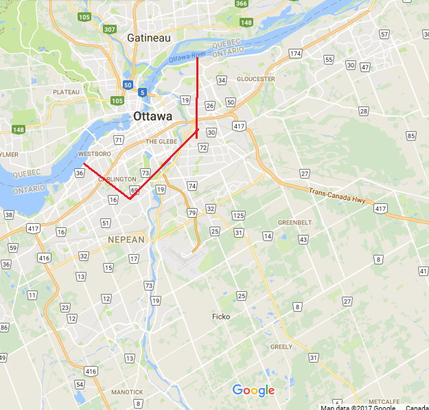 Carleton place到Kanata大概20分钟吧。来回大约50公里。