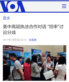 美国之音5日报道称,10月4日,美国和中国举行了执法与网络安全高层双边对话。这是川普总统和中国国家主席习近平今年4月会面时商定的四个对话中的一个。这次高层对话涉及两国的分歧,并针对移民和在逃人员进行了“坦率的”讨论。