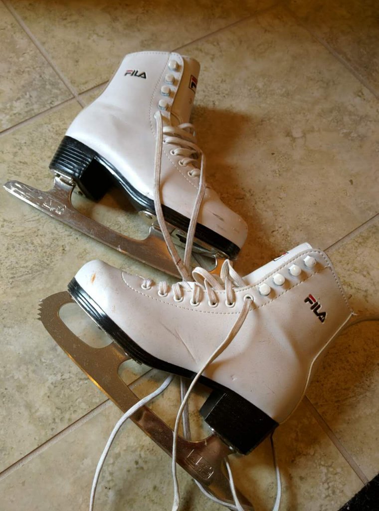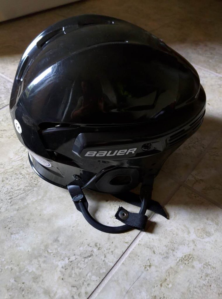 hockey / skate helmet 9成新, $25 Two pairs of skating shoes for sale. FILA, size 3, $25 CCM, size 13, $20