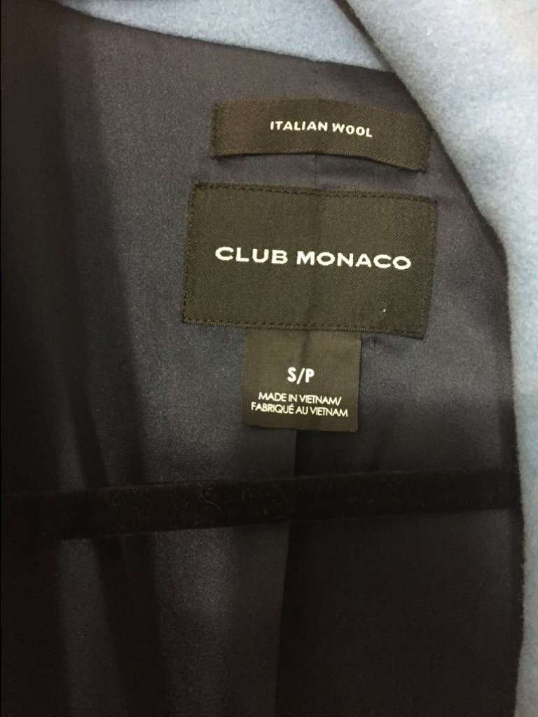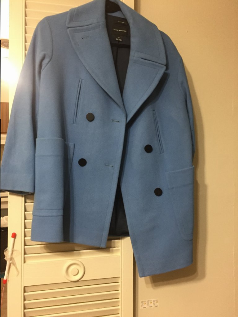 club monaco蓝色羊毛大衣,全新没穿过,s码,50刀