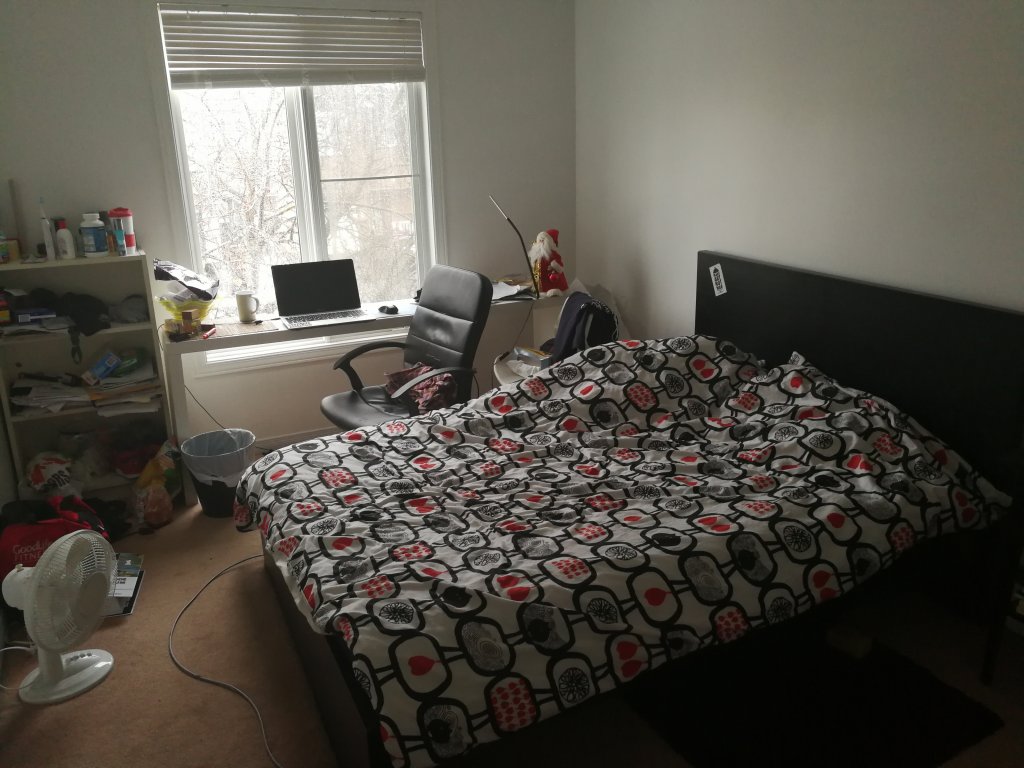 招租房间在2楼,次卧,含家具。和另一室友共用1.5个Bathroom(2楼Bathroom和1楼Washroom),厨房、洗衣房、餐厅、客厅共用。厨房有烤箱、微波炉、电磁炉、咖啡机、榨汁机、两个大冰箱等。洗衣房在地下室,有洗衣机和烘干机。客厅有电视、PS5、电视盒子。车的话目前2辆,再停1辆没什么问题。
