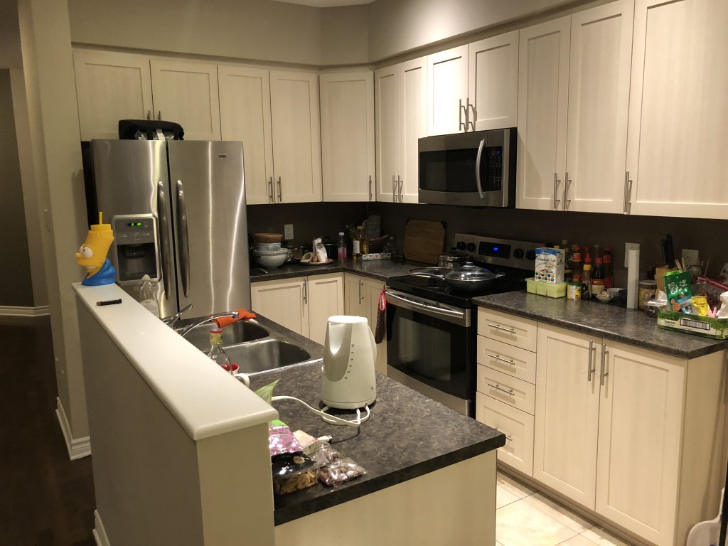 出租的房间有拼接好的床(没床垫),还有准新的电脑桌和打印机。衣柜很大现在放的全是我的东西(看图里能装很多衣服)。