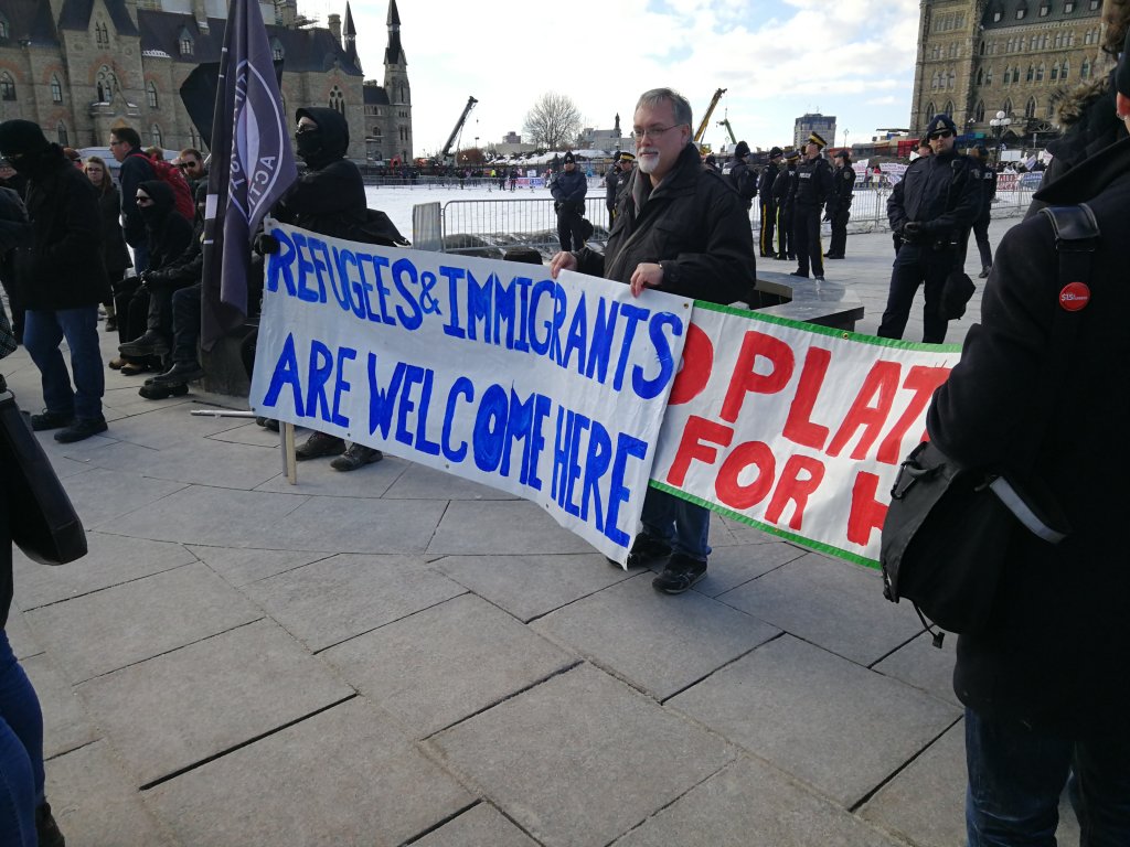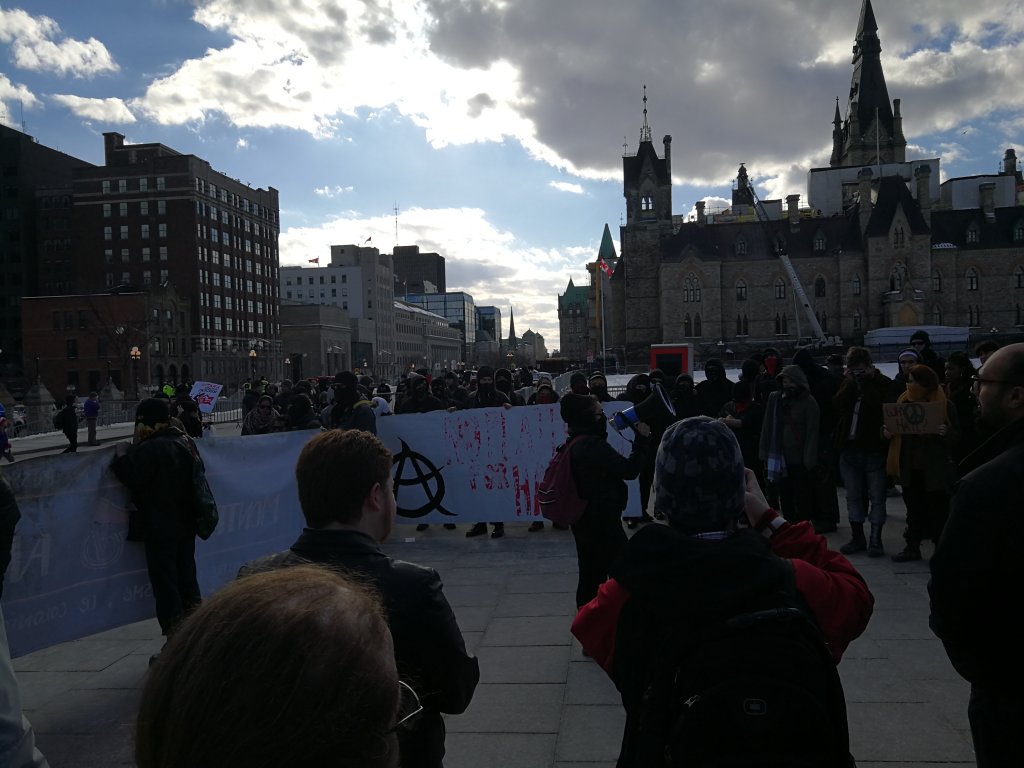 前三张是占据主导位置的左派人士,就在国会山门口,Centennial Flame的前面,一般经过的路人都可以清楚看到banner,听到他们的shame shame的口号,可以在他们身边拍照。后三张是今日示威的位置,在非常深的位置,要进去得绕个大圈才行,好不容易到了近前(最后照片的位置),警察出来挡驾不让进了。
