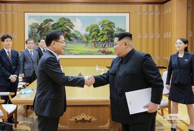 2月9日,朝鲜最高人民会议常任委员会委员长金永南率领的高级别代表团乘专机抵达韩国,出席当晚举行的平昌冬奥会开幕式。次日,文在寅在青瓦台会见朝鲜高级别代表团并共进午餐。金与正作为朝鲜最高领导人金正恩的特使向文在寅转交了金正恩关于改善朝韩关系的亲笔信,并转达了金正恩对文在寅访问朝鲜的口头邀请。