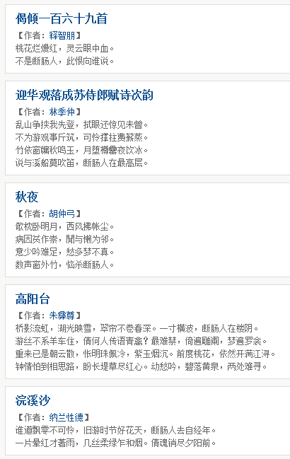 ccc 说: 你以为肠子断啦!? 浏览附件742596 浏览附件742639 浏览附件742640 浏览附件742641 点击展开... 谢谢。 断肠 = (heartbroken) = 心碎,伤心,心裂(?)。就是'伤心人,心啐人'? 夕阳西下,伤心人在天涯。?