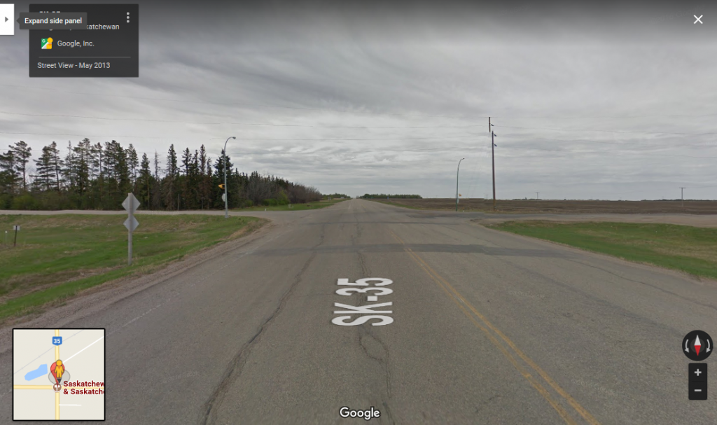 https://www.google.ca/maps/place/SK-335+&+SK-35,+Ridgedale,+SK+S0E+1L0/@53.1041897,-104.0264588,3a,75y,180.67h,91.32t/data=!3m6!1e1!3m4!1s-l7Nze85f7XtEr5Eub2q-w!2e0!7i13312!8i6656!4m5!3m4!1s0x52fde649dbe97077:0x23d0db9d793a946d!8m2!3d53.1037202!4d-104.0265533