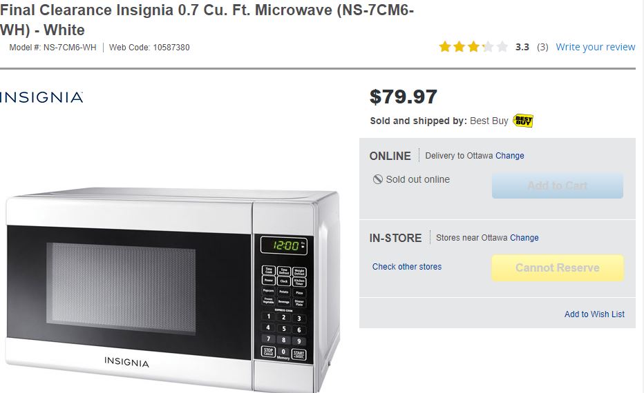Insignia 0.7 Cu. Ft. Microwave (NS-7CM6-WH) - White