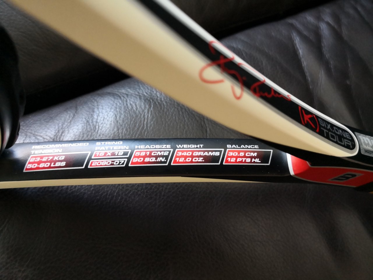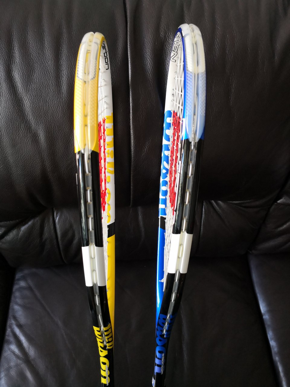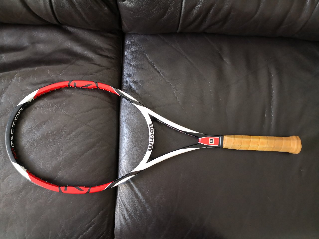 网球拍(一)Wilson K 6.1 Tour 90拍面,三号柄,牛皮握柄,费德勒曾用经典款。保护很好只有轻微的小掉漆和擦痕,成色见图,$80 (此拍不适合初学者)。