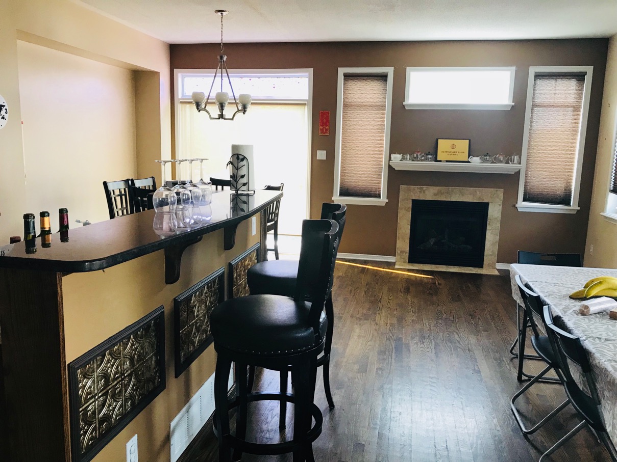 4. 设施家具:中央空调,新风系统,壁炉,木头家具,每个房间都配有书桌椅,免费wi-fi,有传真机和打印机,洗衣机,烘干机,厨房餐厅各种电器配备齐全(微波,烤箱,烹饪电炉,咖啡机等),后院还有BBQ烧烤炉。方便商务人士工作和小家庭日常生活