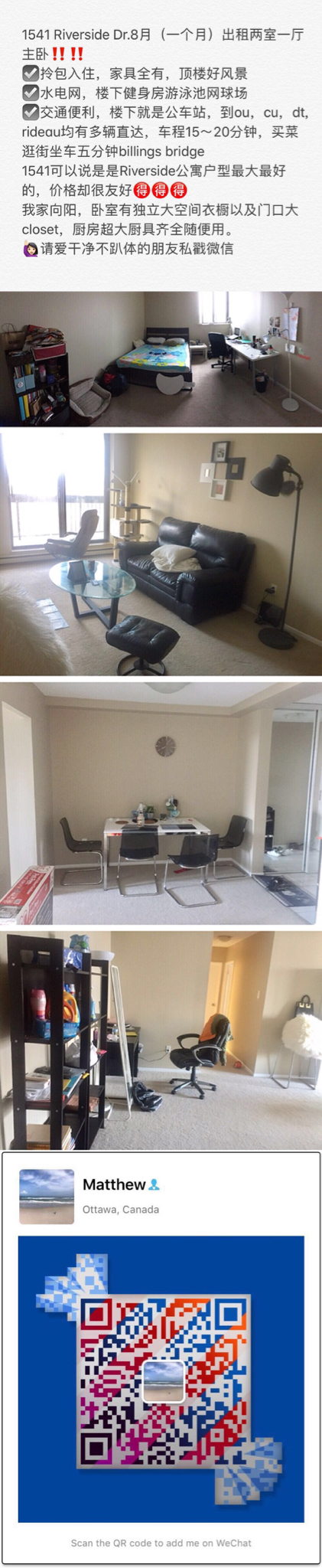 Riverside 1541 超大主臥 招八月中至八月底短租