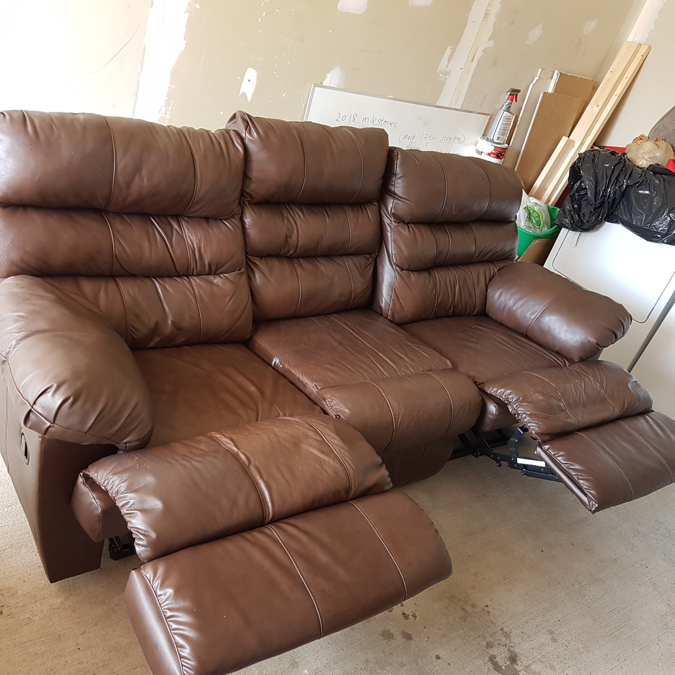 三年新真皮沙发,购置于 Ashley Furniture. 三座沙发加一座沙发。