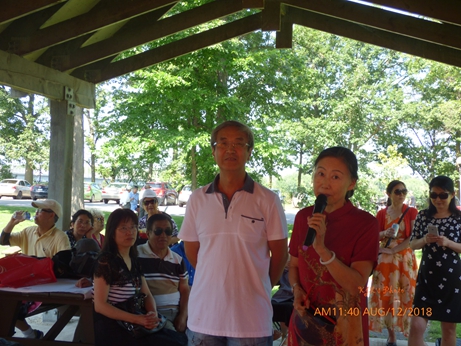首先请东北同乡会会长,和统会执行主席,也是这次郊游活动的召集人郭玉秋女士致辞。郭玉秋讲到:代表5个社团组织,欢迎大家的到来,希望吃好玩好,通过郊游多认识一些朋友, 更好享受渥太华难得的秋日时光。