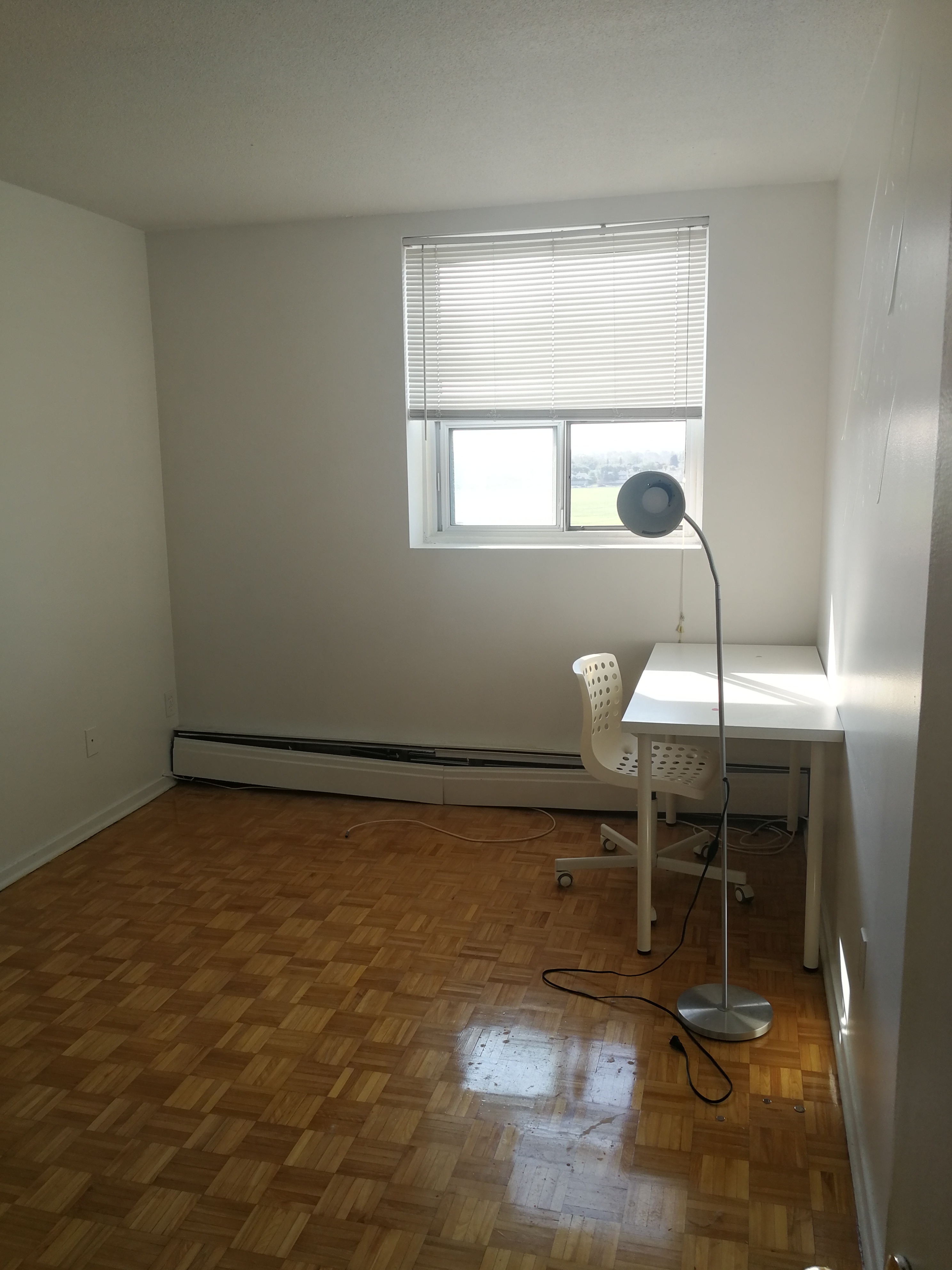 没有床,需自己提供。(也可和我商议提供)。有个学习桌,椅子和落地灯。