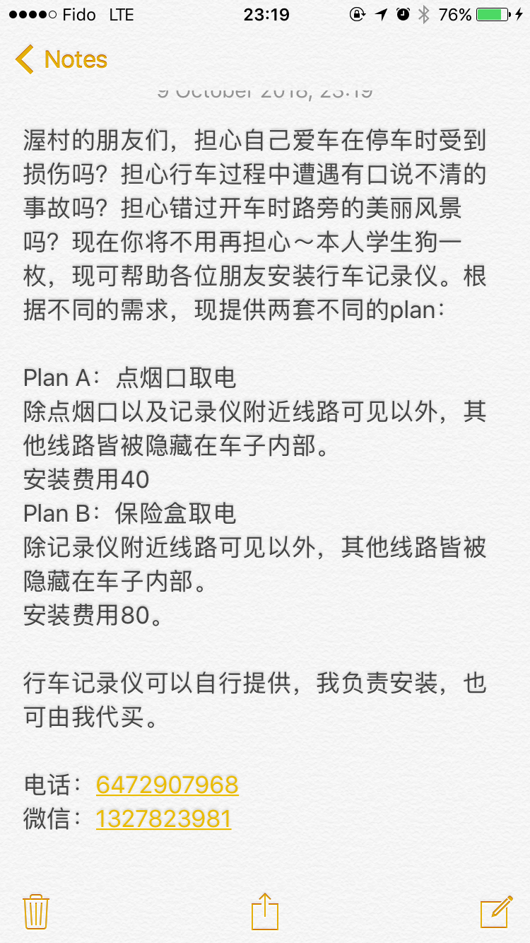 M monsteralbert 新手上路 注册 2014-06-14 消息 720 荣誉分数 0 声望点数 26 2018-10-26 #20 GuardianAngel 说: 赞。挺好。记录仪大概多少钱一个? 点击展开... 不好意思刚刚回渥太华 记录仪的话80-400不等,看个人需求了