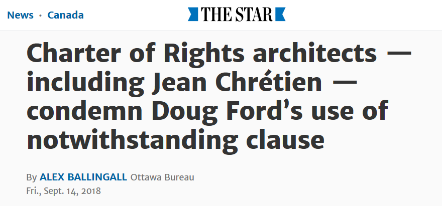 Ford's invoking of the notwithstanding clause marks the first time it is being used in Ontario.