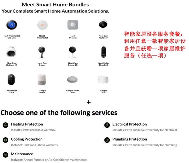1)租用智能家居产品+获赠家居维护服务(任选一项)