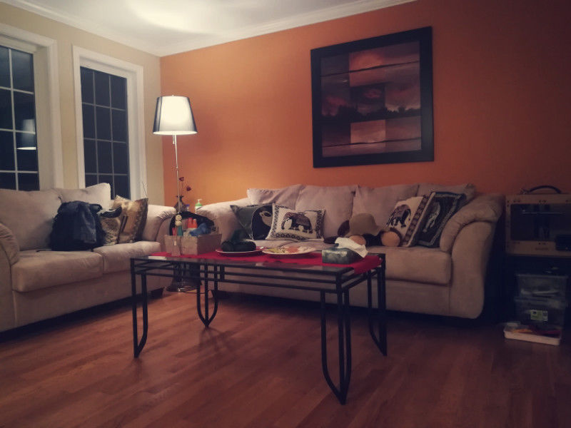 Townhouse with nice patio in the backyard Furnished basement and super comfortable couches Small garden in backyard