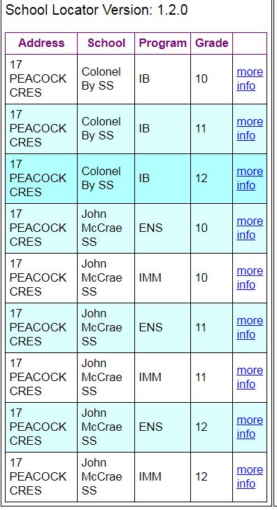 学区链接:https://www.ocdsb.ca/our_schools/school_locator, 把这个房子的地址输入进去,学区内的学校就会出现。如果觉得孩子压力大,这个学校不适合,那么John McCrae Secondary School 也是一个很不错的选择。它的排名是全省第25位。