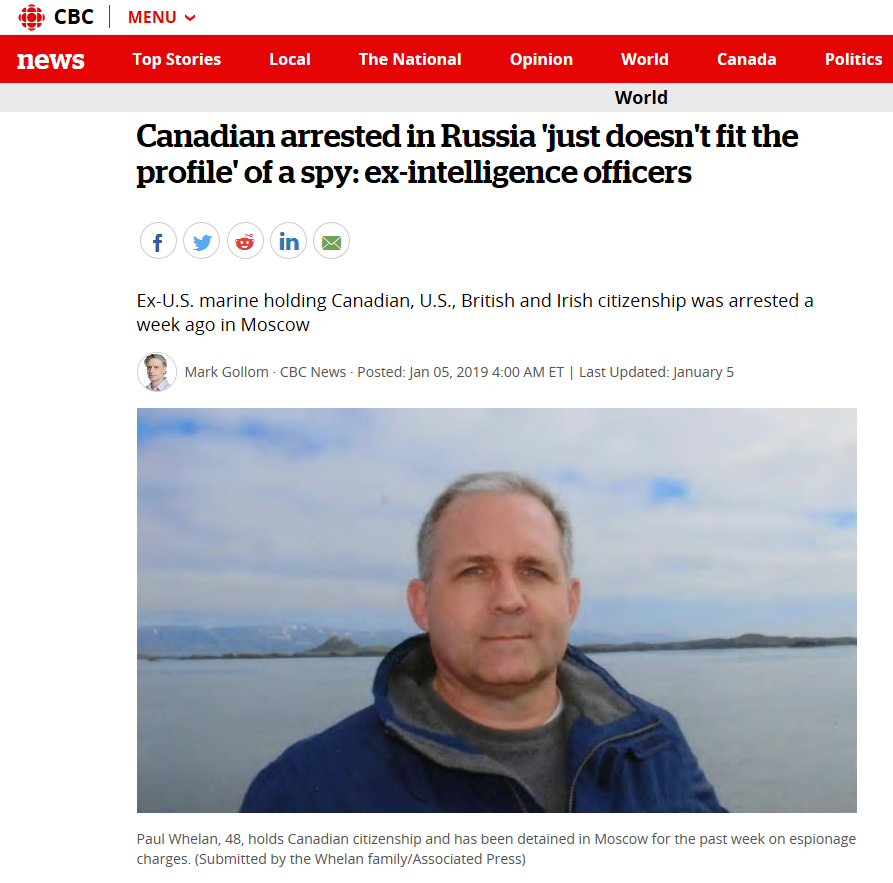 Former intelligence officials are expressing doubts that Paul Whelan, a Canadian citizen who has been detained in Moscow on espionage charges, is a spy, but they're also puzzled about what he was doing in Russia.