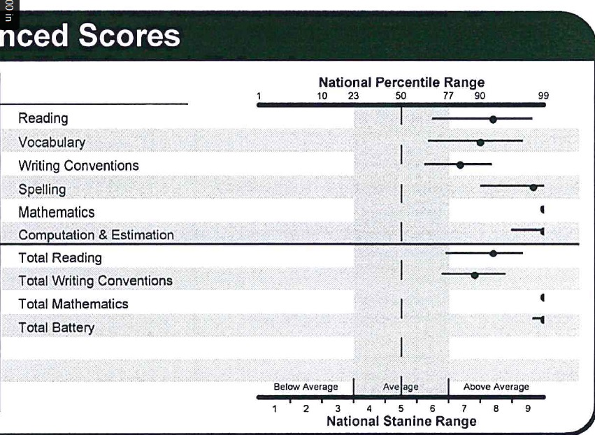 衡量语言的有4个项目(READING, COCABULARY, WRITING, SPELLING) 长方形框内