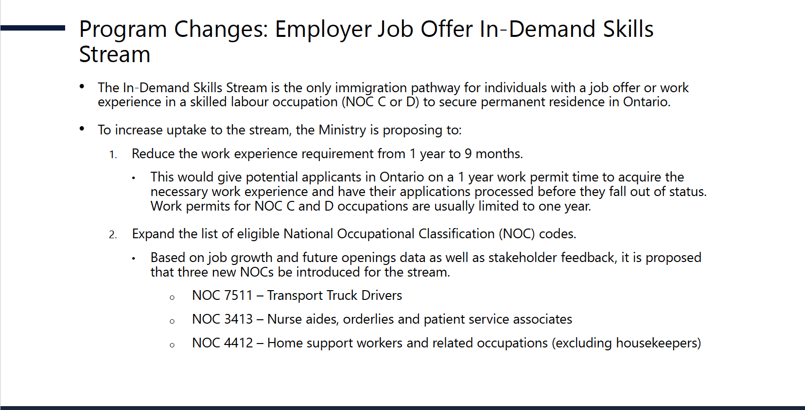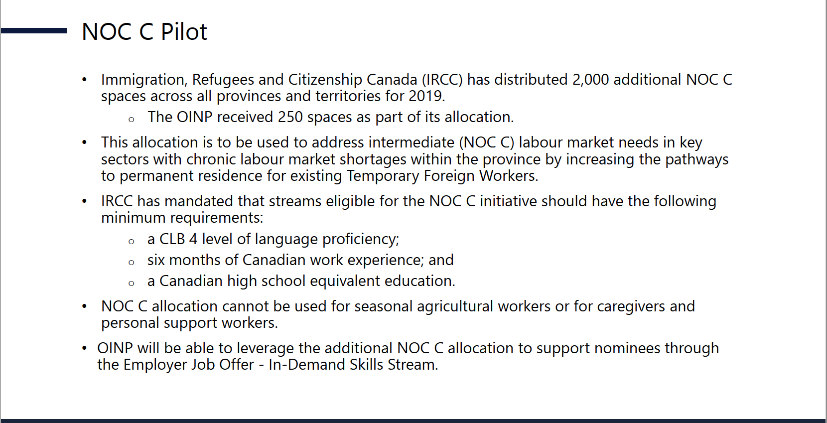 · 联邦政府分配给安省移民局250个NOC C的名额,缓解安省紧缺的劳工市场;
