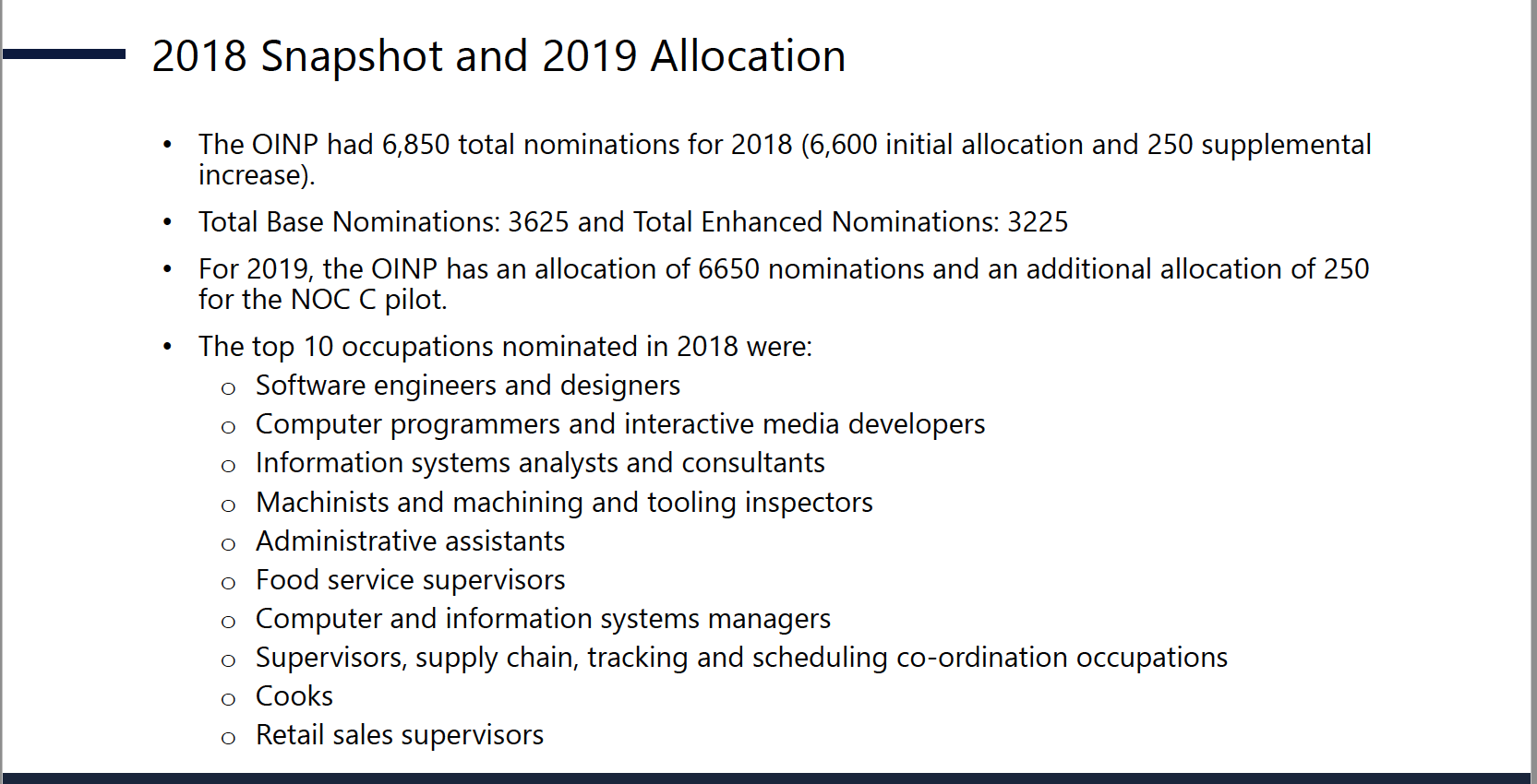 · 2019年安省提名名额6650个,还有额外的250个NOC C的试点名额;