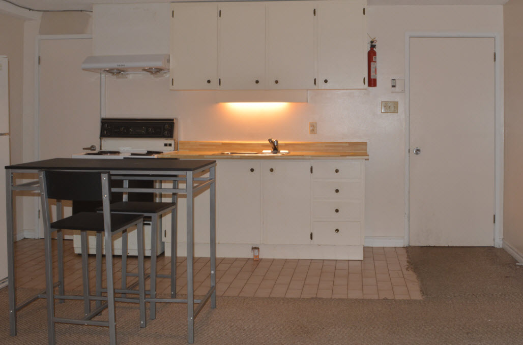 这个Bachelor房间大约有30 -33 平米。在basement。里面有Queen size床,桌子和椅子,一个小厨房(和一个卫生间(带淋浴厕所洗手池)。只合用洗衣房, 大门.