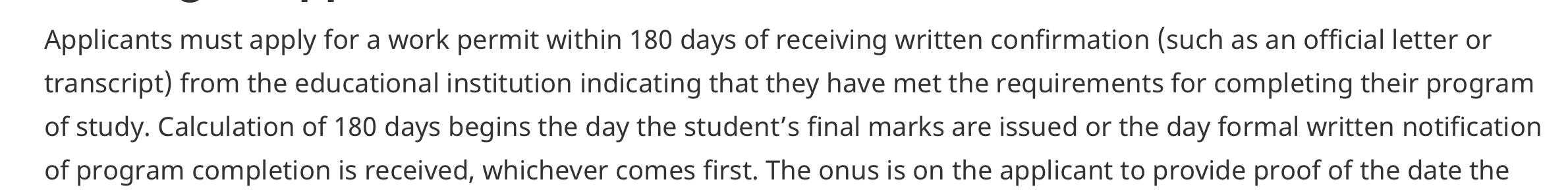 · 如果课程的设计时长是8个月到23个月,那么毕业工签的时长将会是等长于课程的设计时长;但是有时候移民官会根据情况,给予16-23个月(不包含寒暑假)的研究生/博士学习三年的工签;