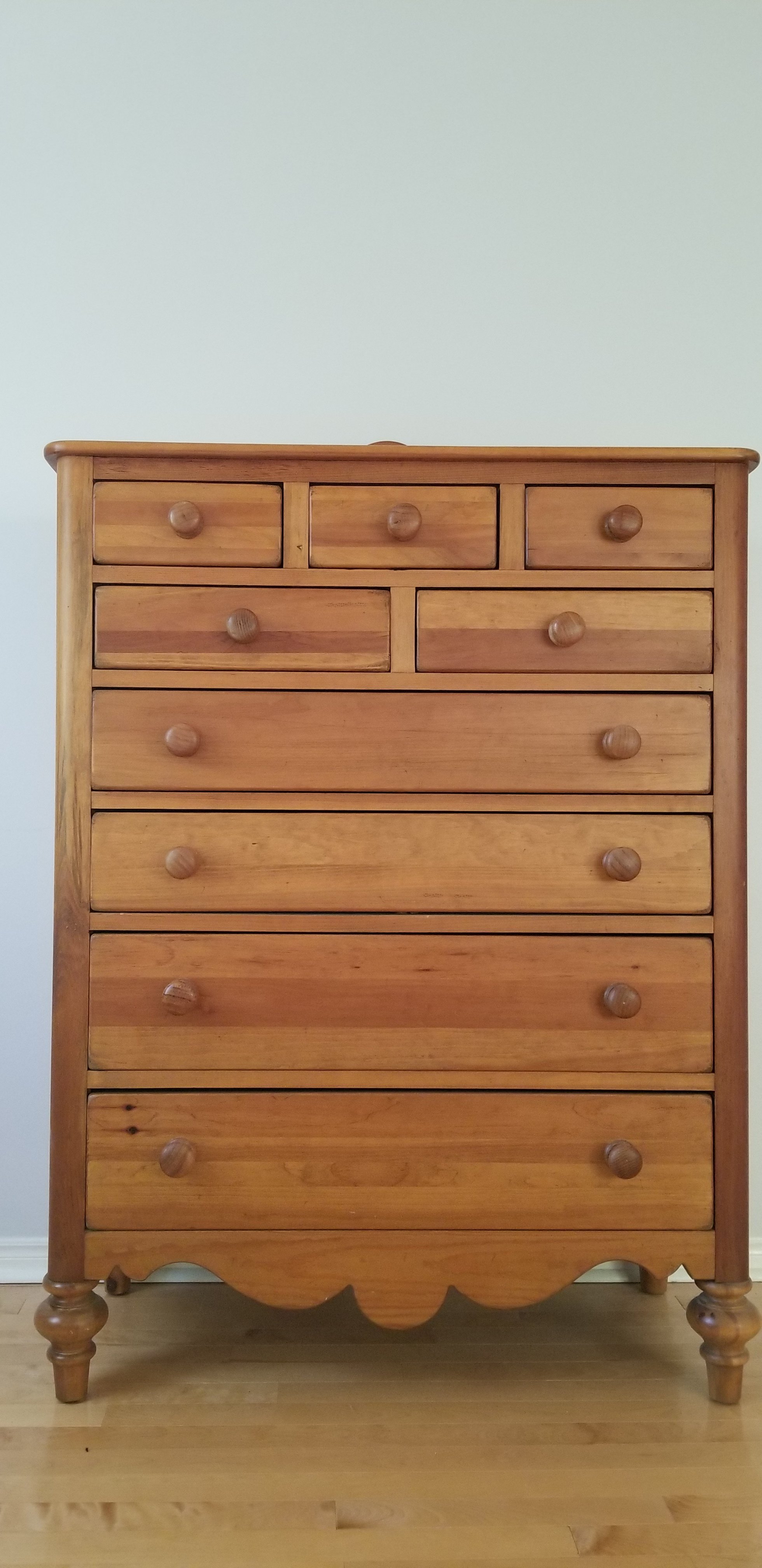 Beautiful Lexington Solid Wood Bedroom Set includes Queen Sleigh Bed, Tall Dresser and Regular Dresser. This is well made in the USA and costs more than $5000 new. We are selling because we simply can't fit into our downsized bedroom. We can include the mattress and box spring if wanted.