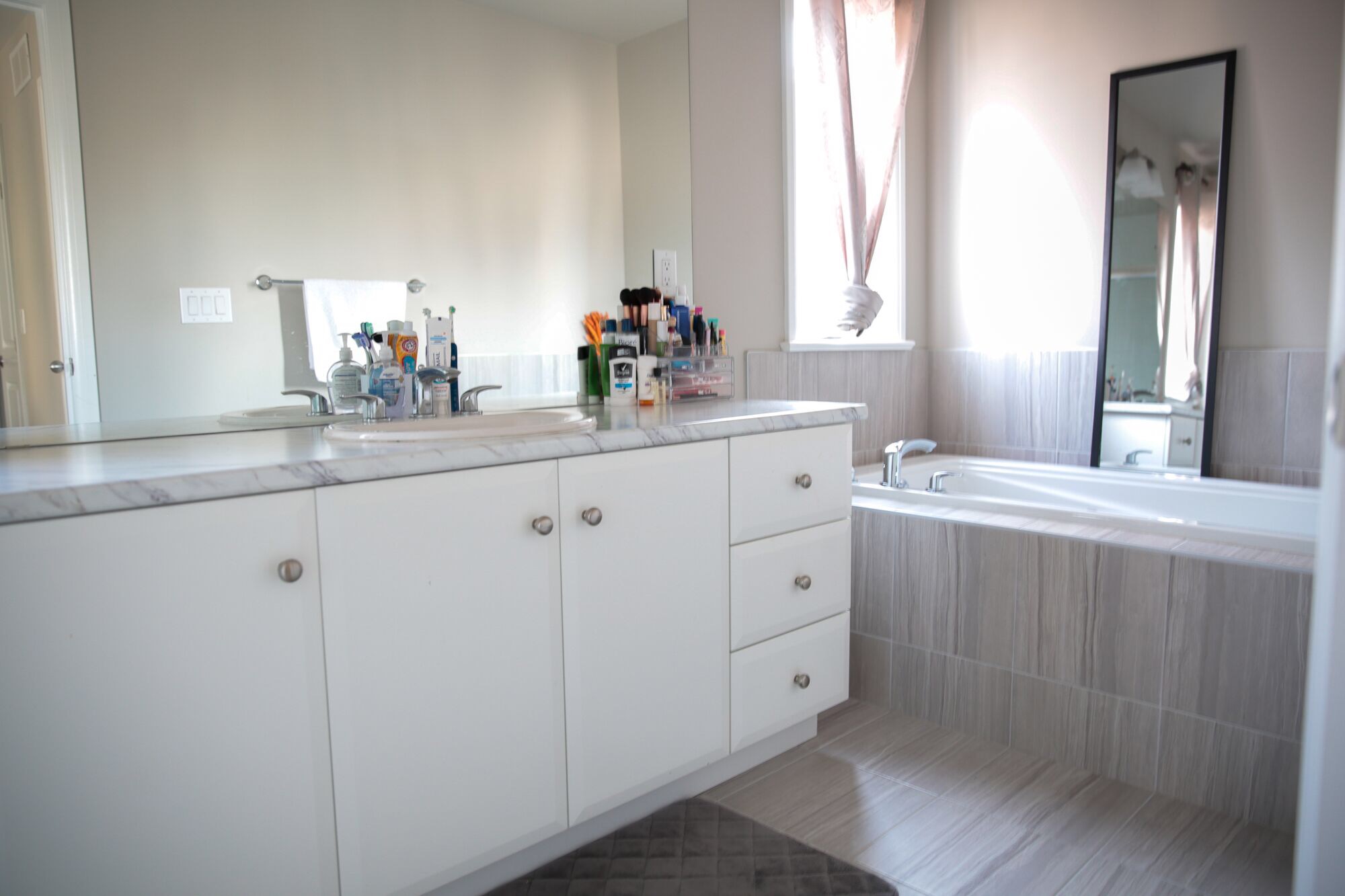 3卧2.5卫,9尺高顶,主卧超大,厨房大理石台面,地下室全装修。一楼和楼梯木地板,其他地毯,二楼洗衣房。