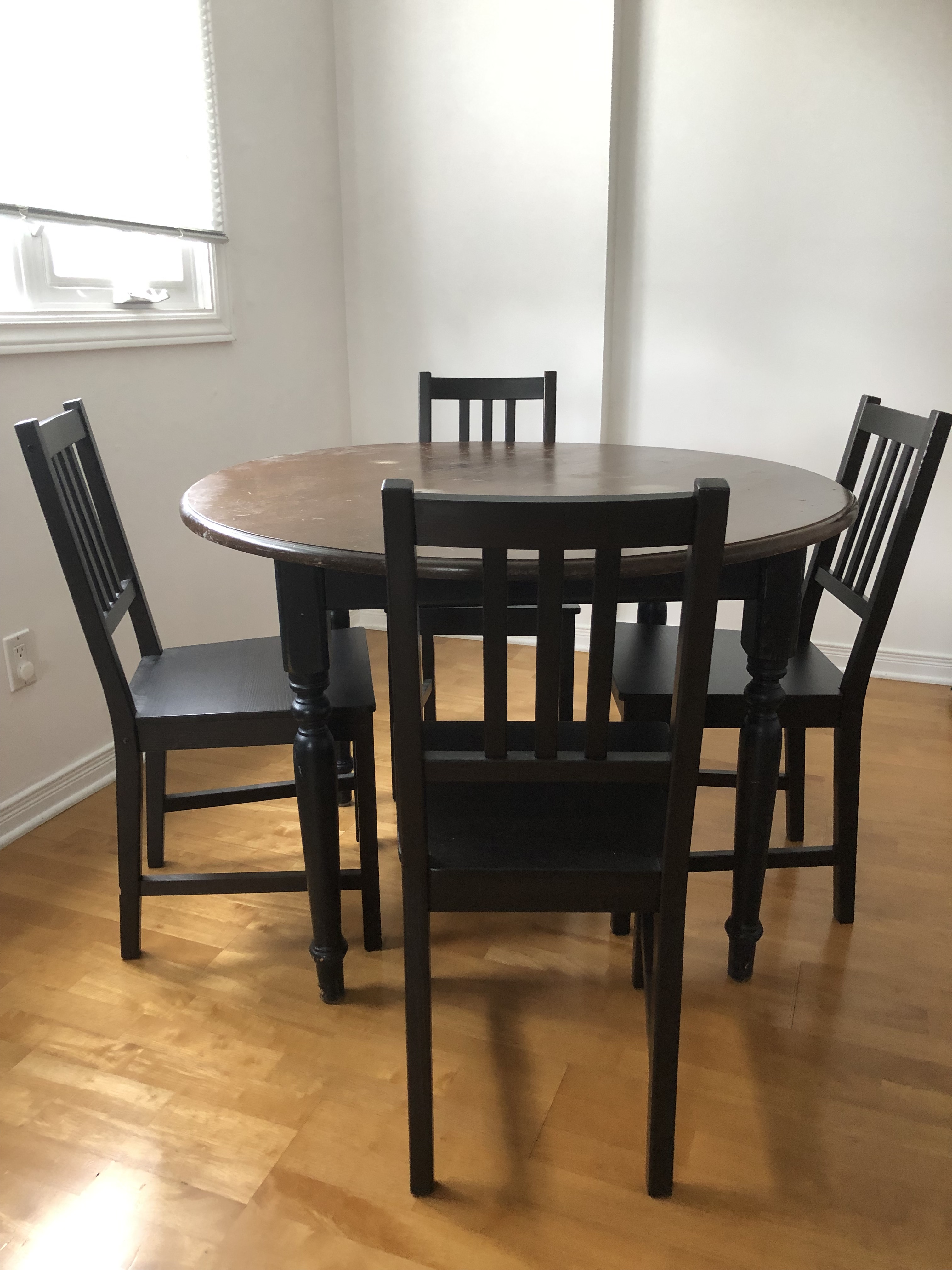 - 实木餐桌+四把实木椅子 $100 另送两个椅子