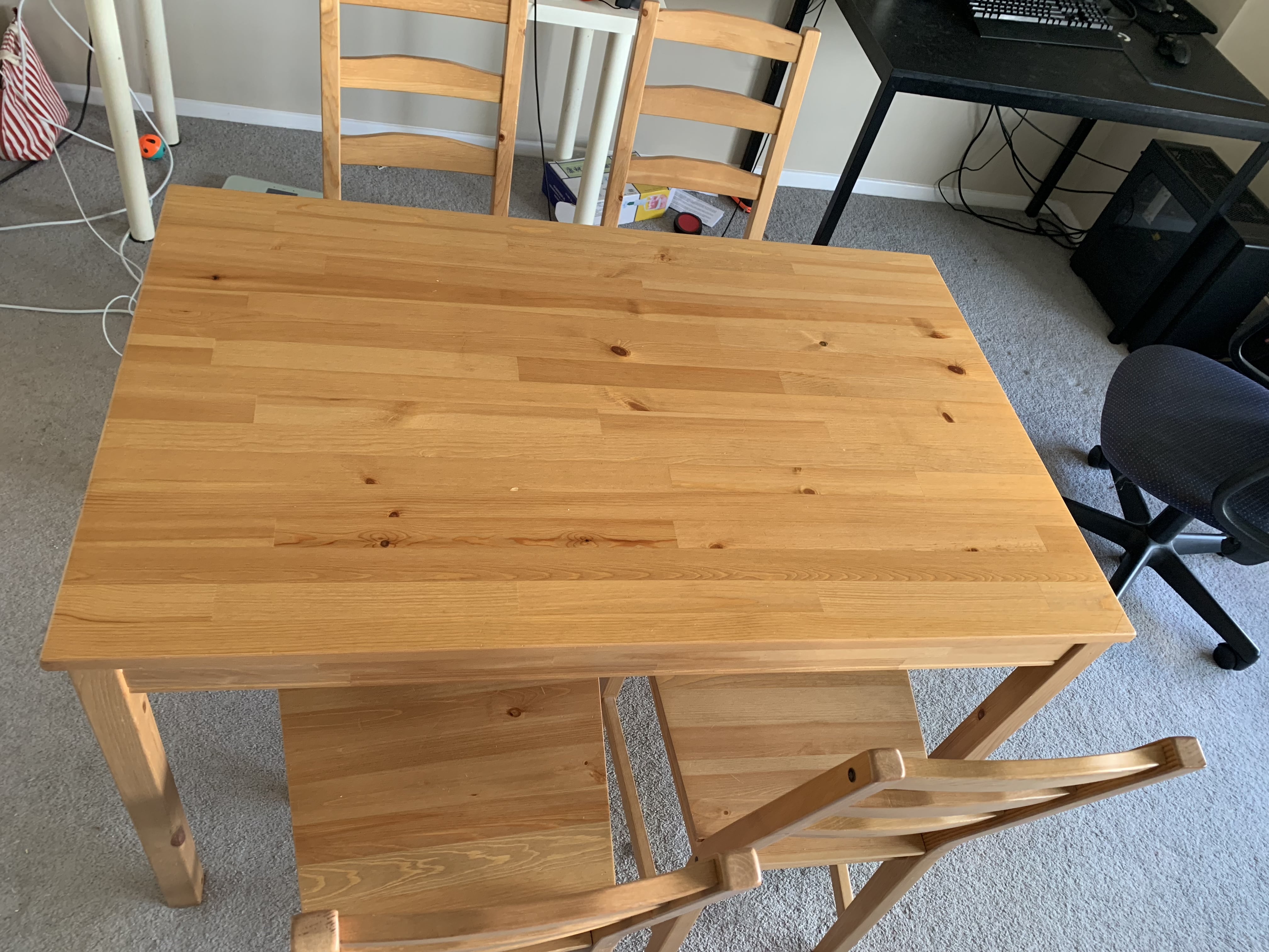 木餐桌加四张椅子,全套100刀出