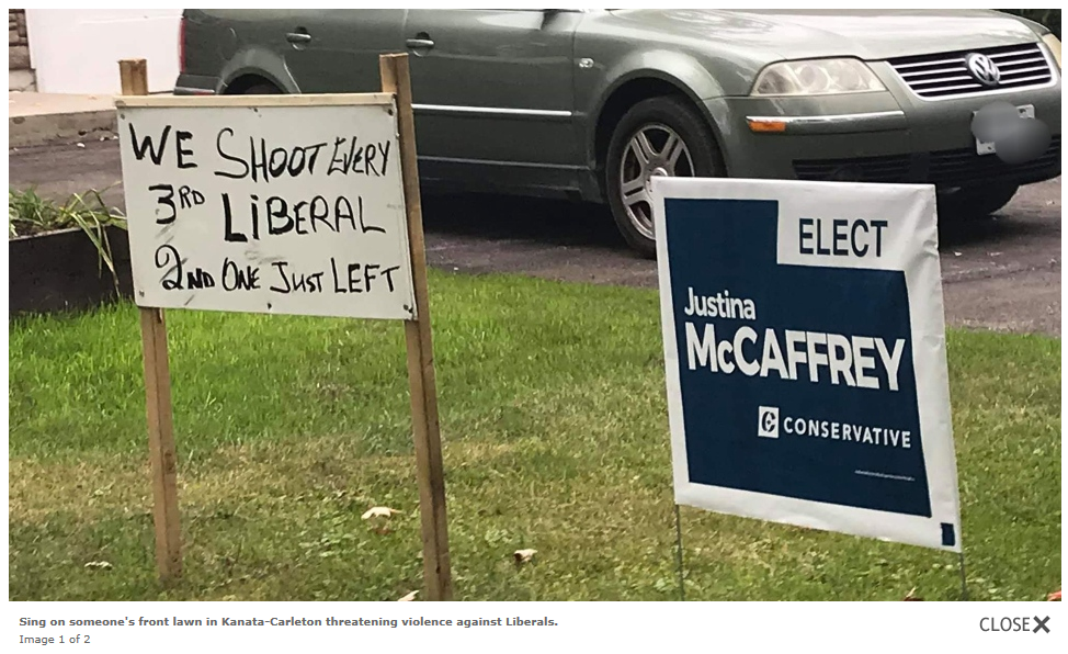 你不是在开玩笑不知道谁竖的俩牌子吧?那是个私宅前院草坪,私宅主人不同意能竖排子吗?边上就是车道,上面停的车牌被mosaic了。。要不你要个原图查下车牌?那个牌子显然是个低级玩笑。。