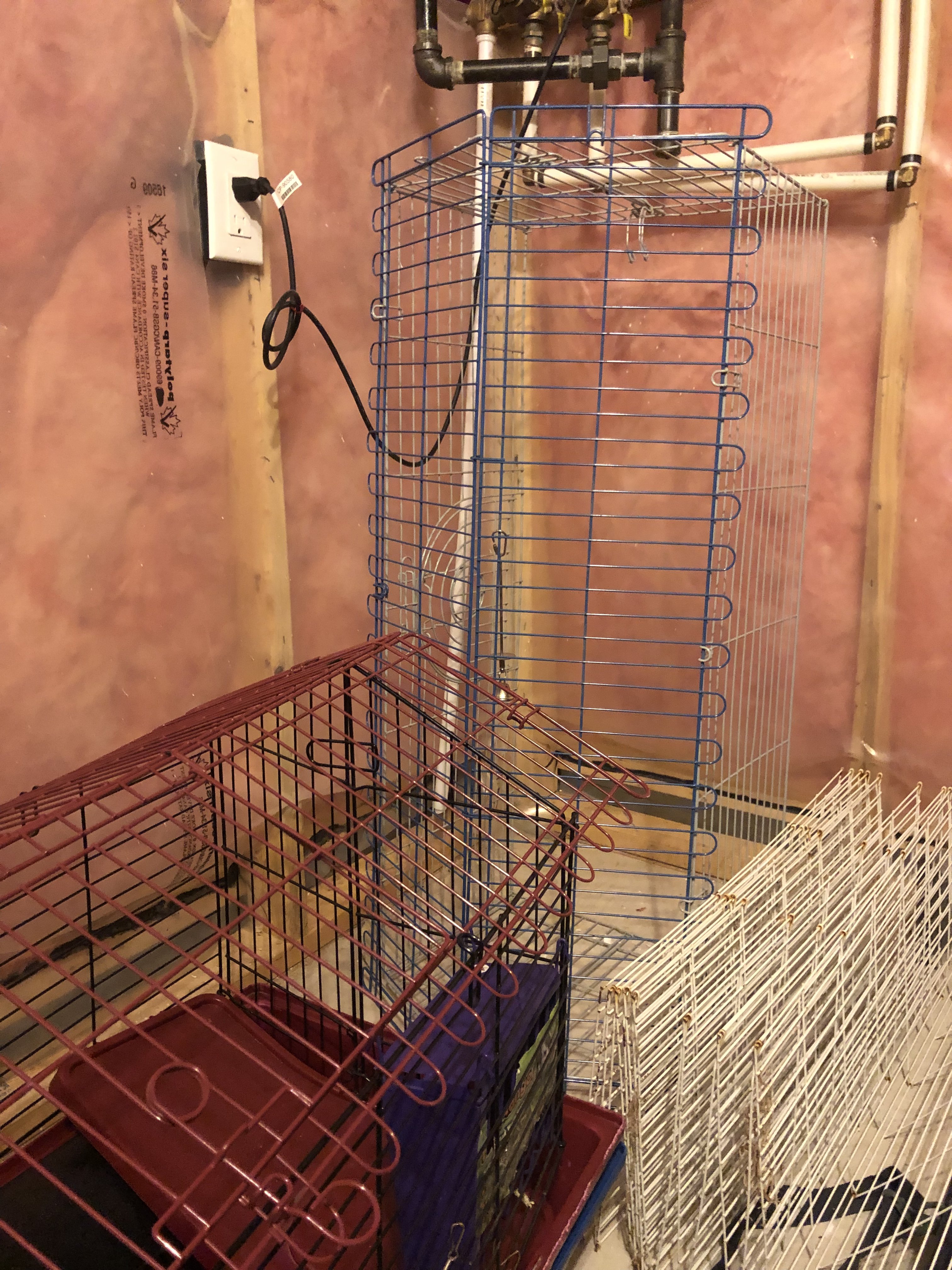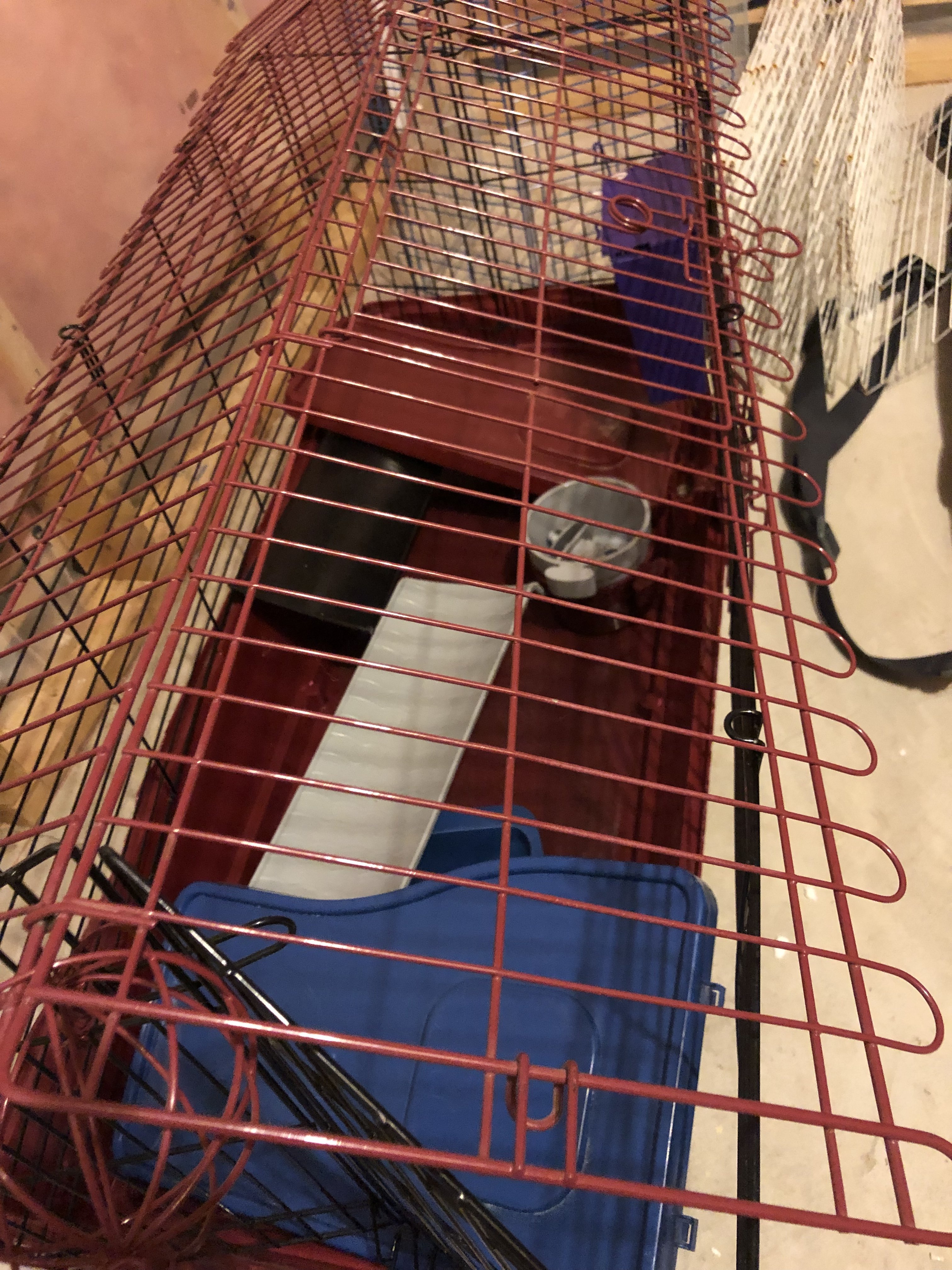 一共有2套。红色一套 蓝色一套。当时兔妈妈生小宝宝就多买了一个。2个笼子都特别新。基本上用了不到1个月就不再用了。50一个