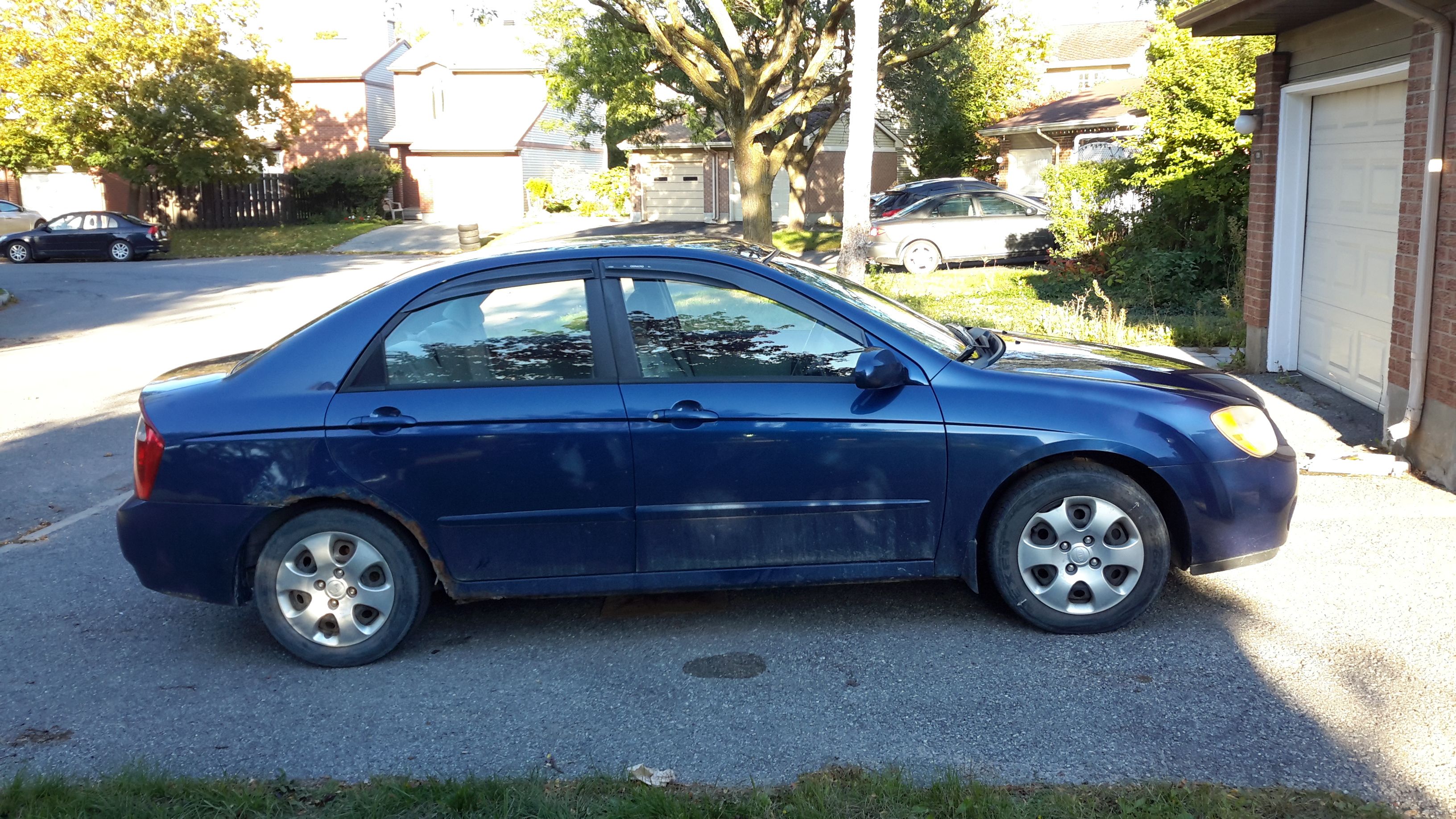 卖车,2005 KIA SPECTRA LX, 22万公里,AS IS. $600. 运行状态,我正开着。发动机,传动箱,空调,热风都很好,散热器,TIE ROD 等不少新件。缺点是车体绣了,减震器和一个后刹车需要修理或更换。是个很好的配件车,或者练手车。