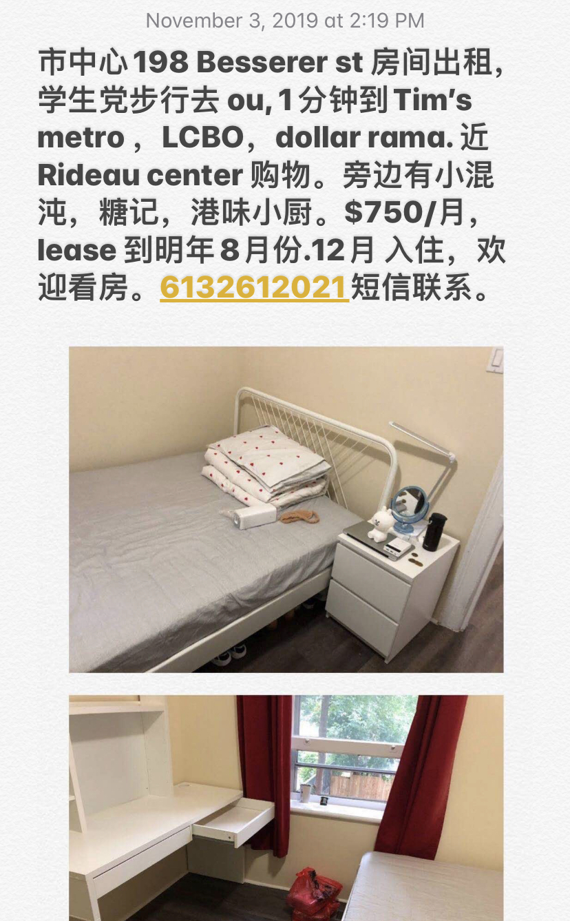 S市中心房间出租,步行到OU,家对面是Tim ‘s , metro, LCBO, lablows, dollar Rama. 附近有上海馄炖店, 糖记,港味小厨。$750/月。 12月入住, 欢迎看房。 6132612021, 短信联系。