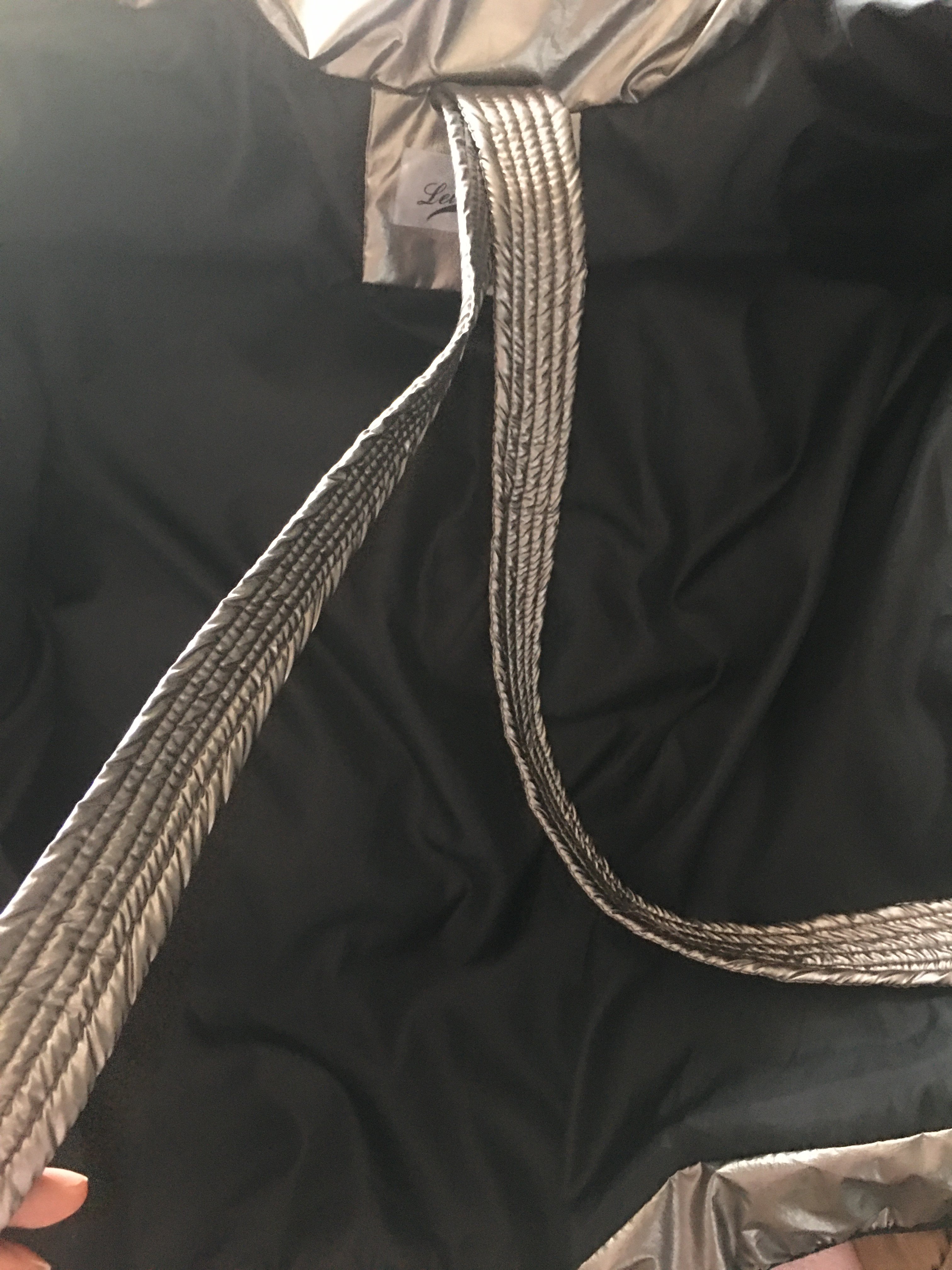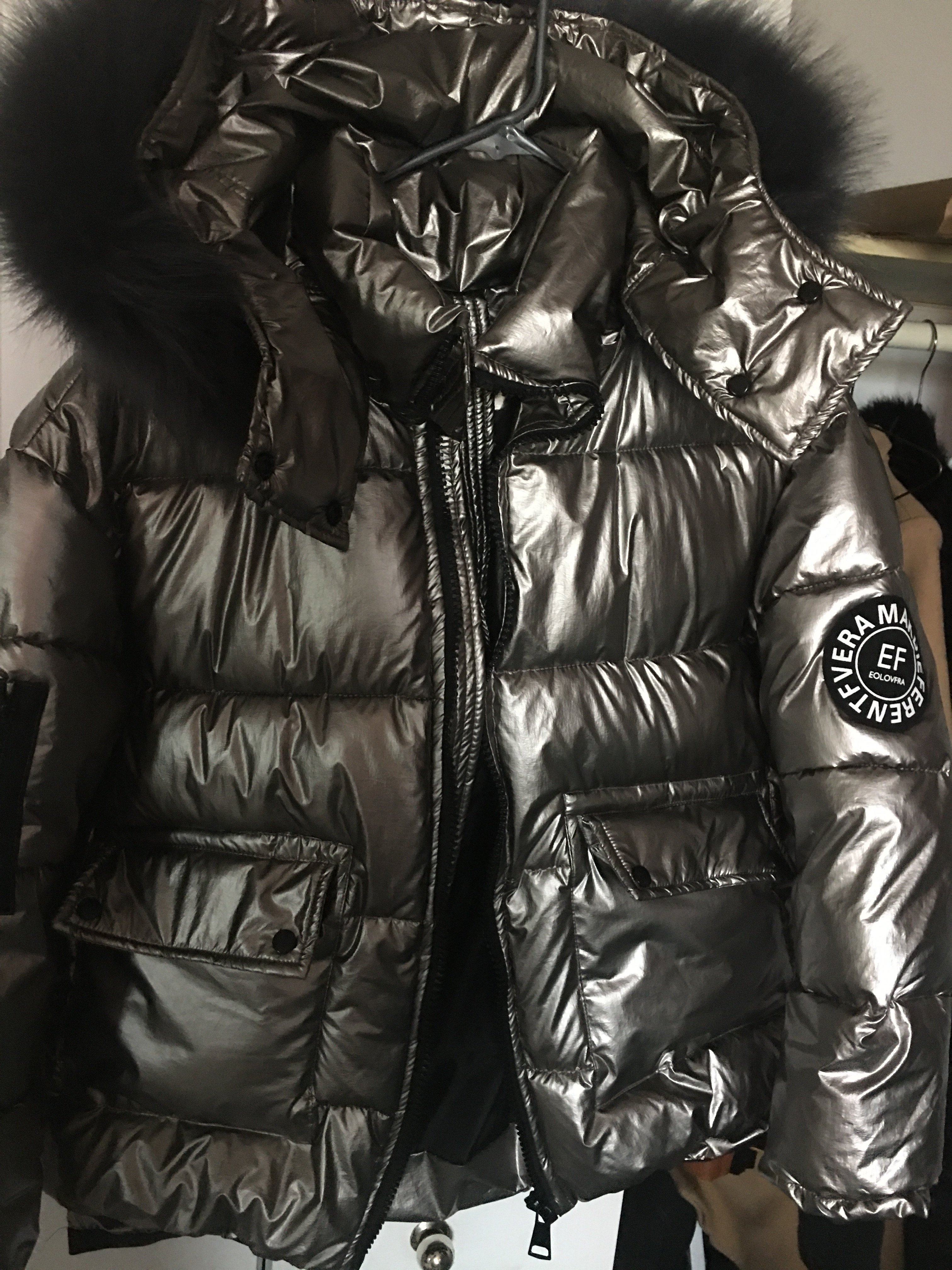 oversize款 不限制身材,但不建议95斤以下买!超级厚实 穿起来显人娇小!穿过一次,本人太瘦!50刀转!不议价质量非常棒!有背带可以逛街背起来!