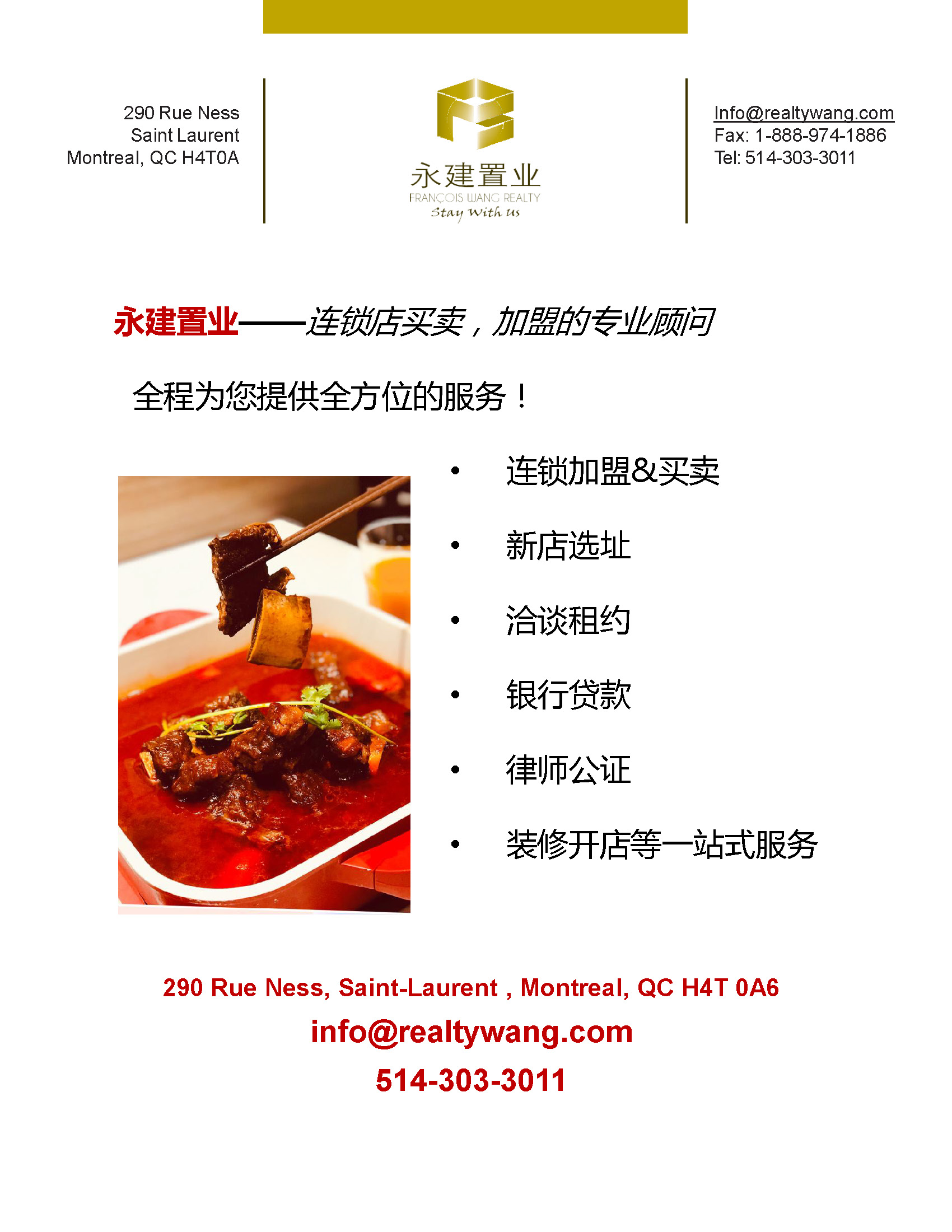 了解更多详情请马上联络【永建置业】(514-303-3011)!