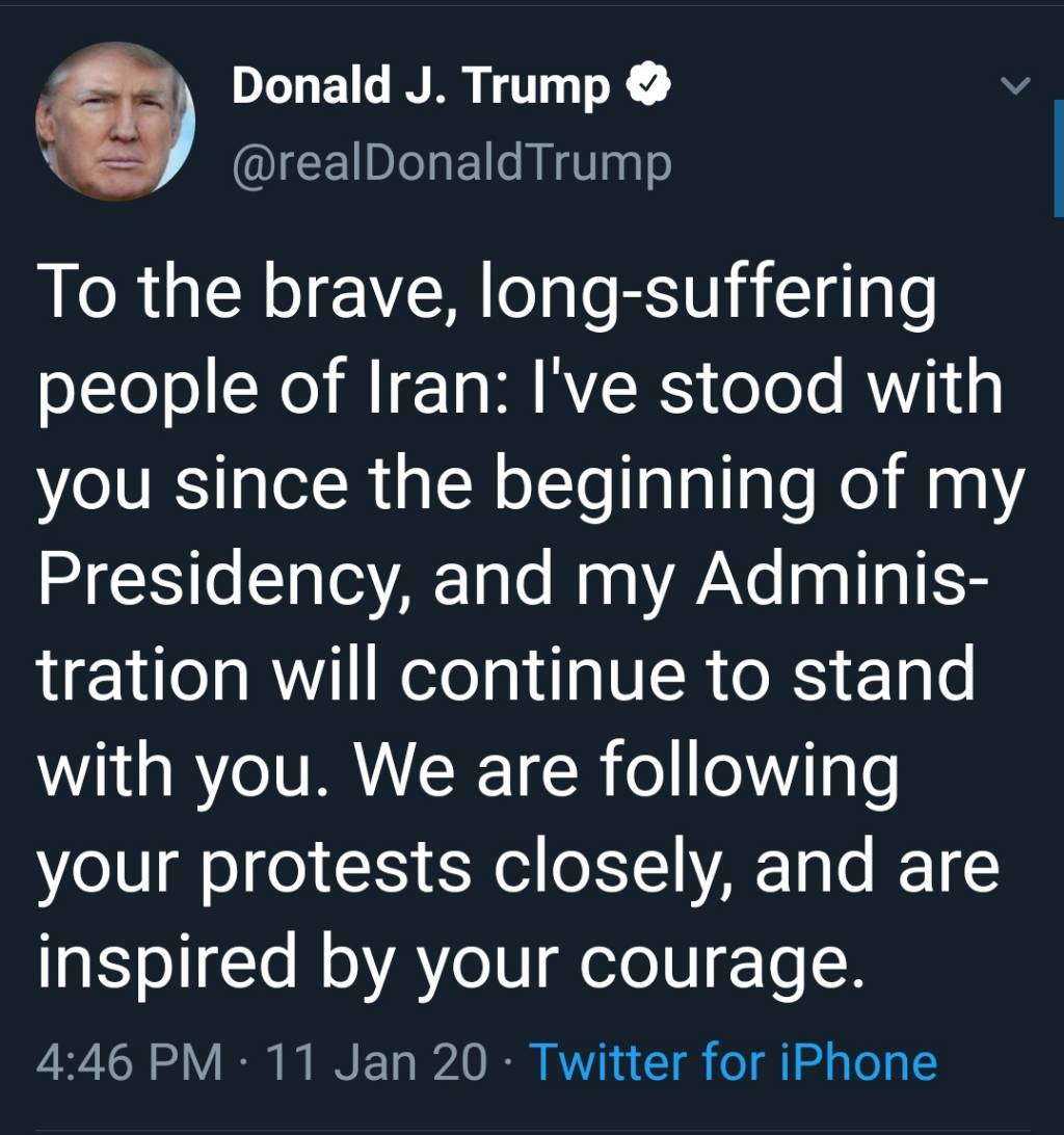 2 2005 本站元老 注册 2004-12-19 消息 2,794 荣誉分数 1,088 声望点数 323 2020-01-12 #29 ottawa_tj 说: Trump表示关注浏览附件877559 点击展开... 老川已经在煽动伊朗变天了。