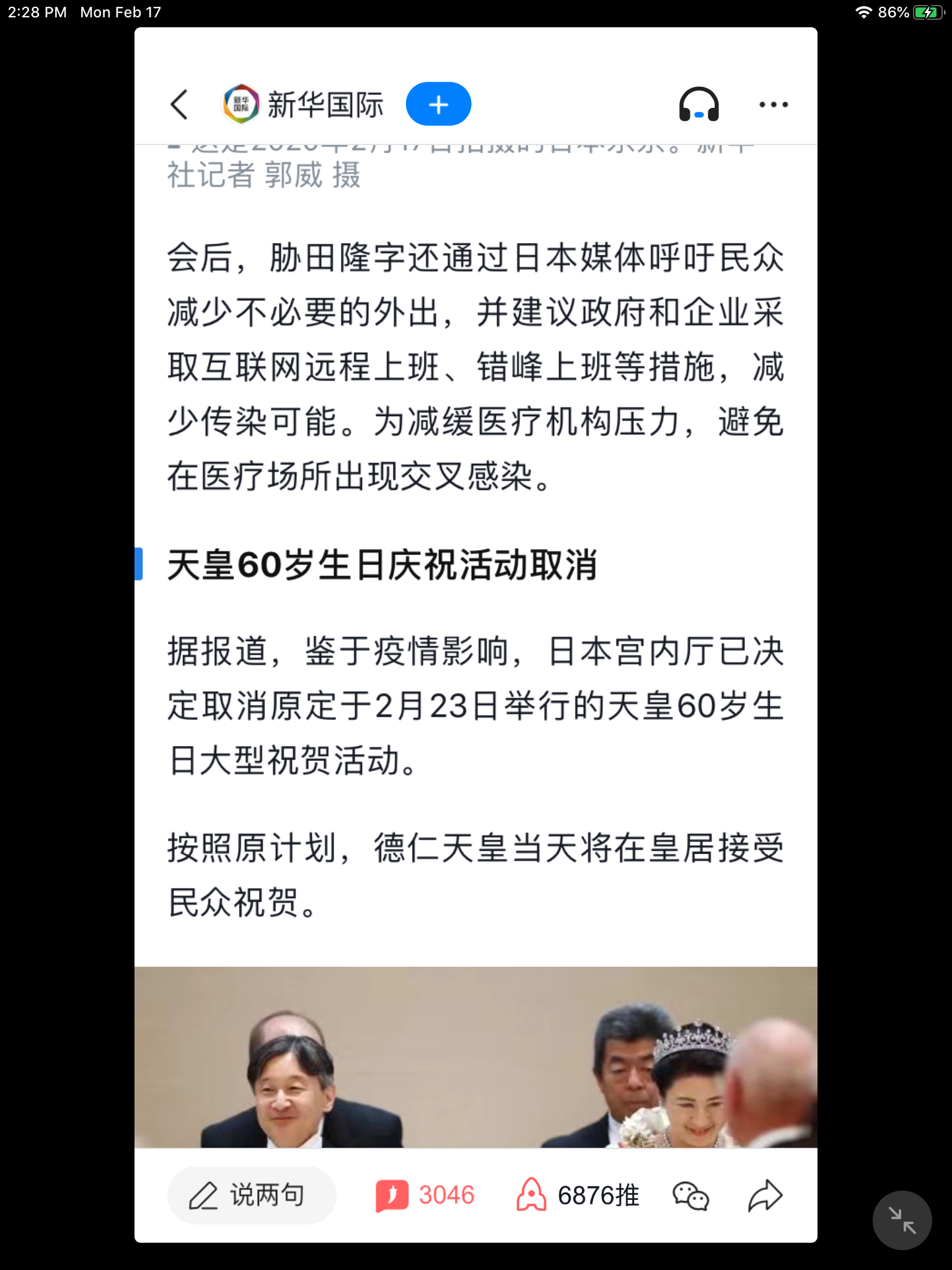 日本首相官邸2月16日告全体国民: