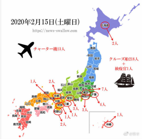 现在,更糟糕的事情在日本本土发生了,2月13日,日本东京地区一位男性出租车司机被测试出呈新型冠状病毒阳性。日本当天新确认8个感染者,其中四个是出租车司机,日本的第一个死亡患者就是出租车司机的岳母。这家东京的出租车公司有70人参加的年会已确认扩散,新确诊患者与其皆有关系。