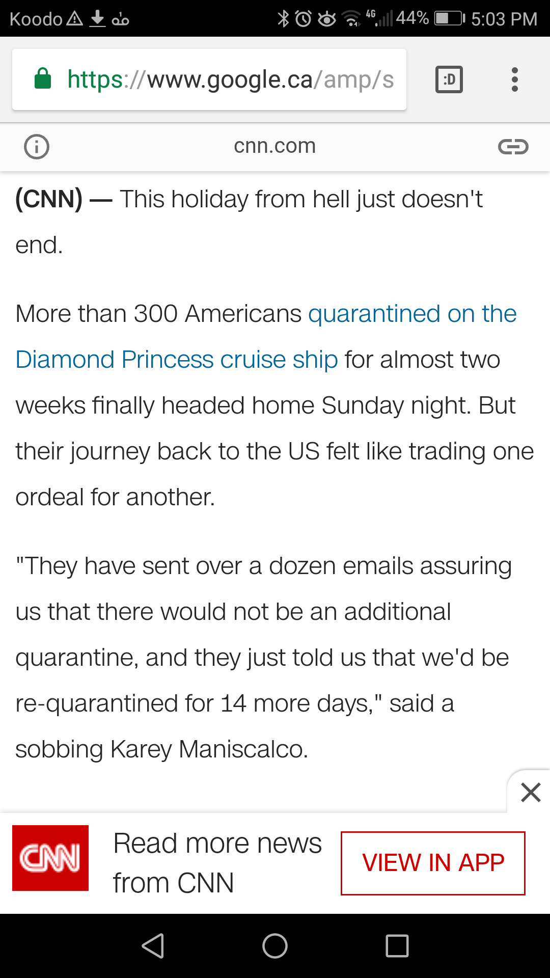 你现在更应该关心的是从Diamond Princess接回来的人是不是会被强制隔离。。昨晚CTV 现场采访船上的人已经强调被隔离过了,不排除法律手段对政府。。CNN有类似的报道,美国CDC的政策也在变化。